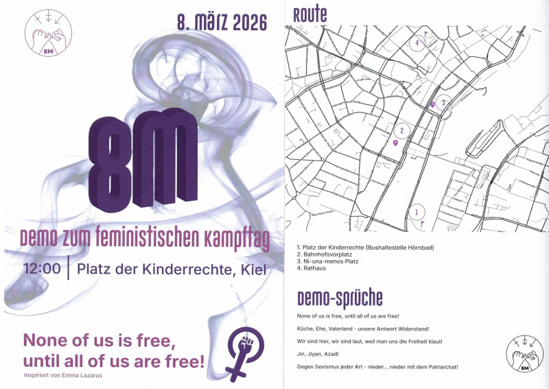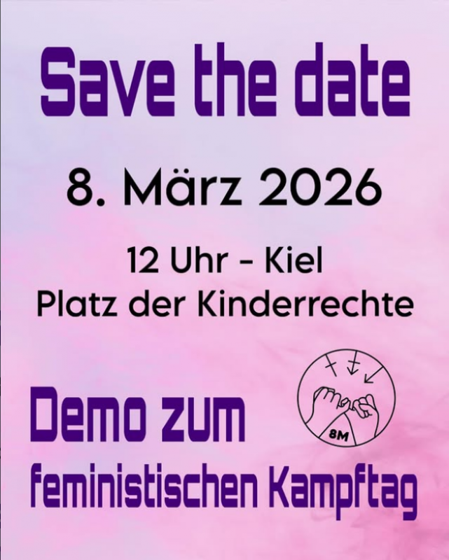 Das Kieler Bündnis 8M veranstaltet am Internationalen Frauentag wieder eine große Demonstration gegen patriarchale Gewalt, an der sich auch das Autonome Mädchenhaus beteiligt.